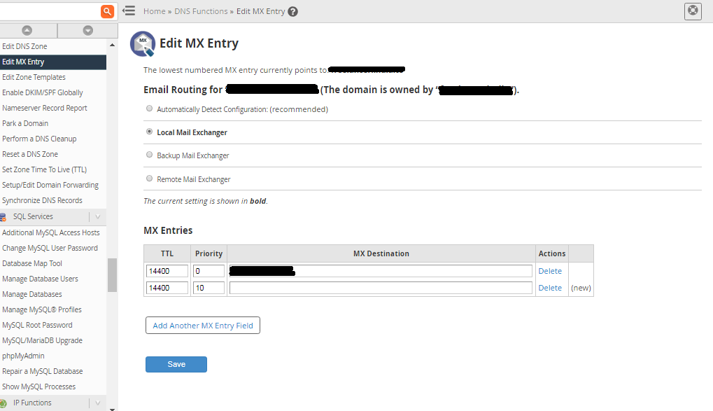 Step 1: By using Edit MX Records option email routing can be configured for the domain.
