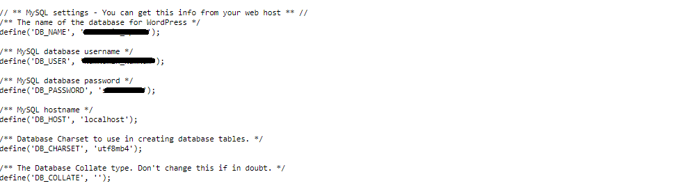 Step 2: Now, from the restored folder of public_html search for addon.com. You have a file called “wp-config.php” and right click on it. Here you need to check 3 lines such as: